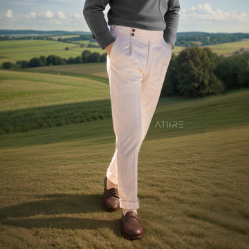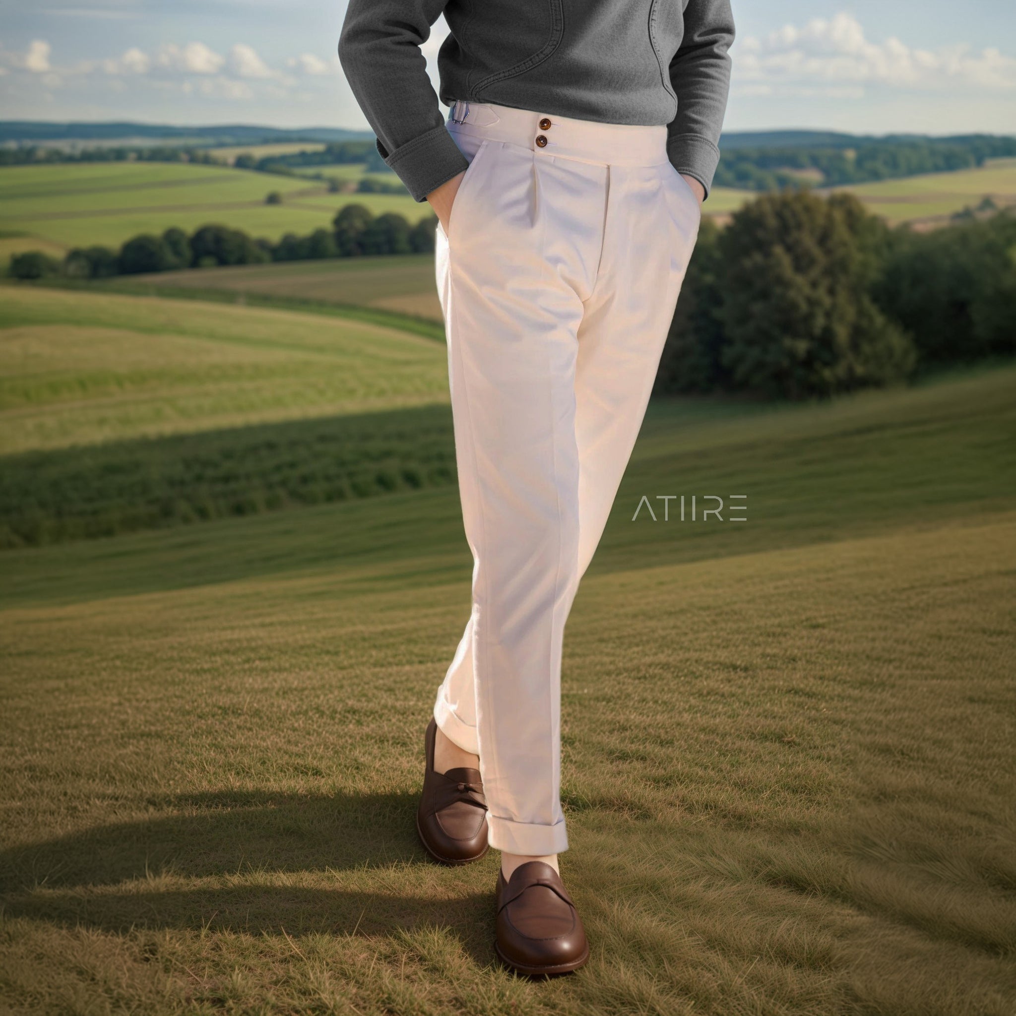 WHITE CLASSIC BUTTONED GURKHA PANTS BY ATIIRE