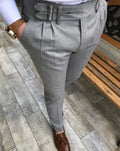 ASH GREY DOUBLE PLEATED BUCKLE GURKHA PANTS BY ATIIRE