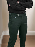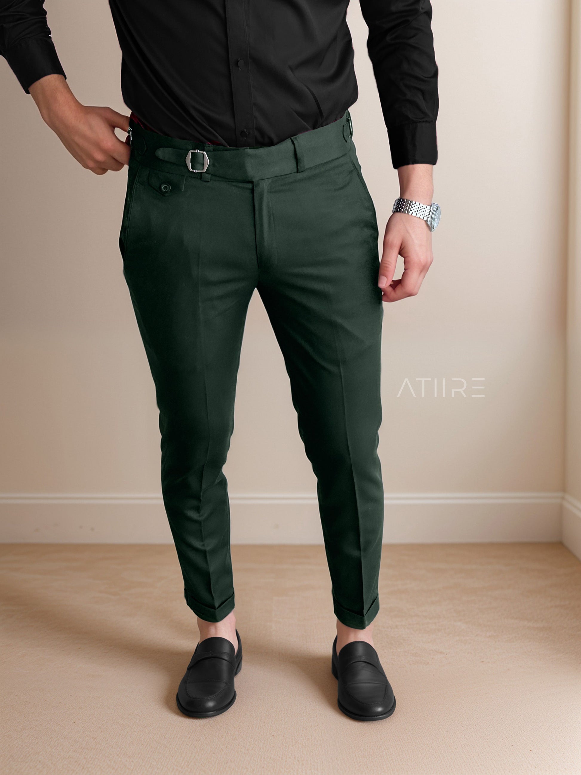 BOTTLE GREEN SINGLE PLEATED BUCKLE GURKHA PANTS BY ATIIRE