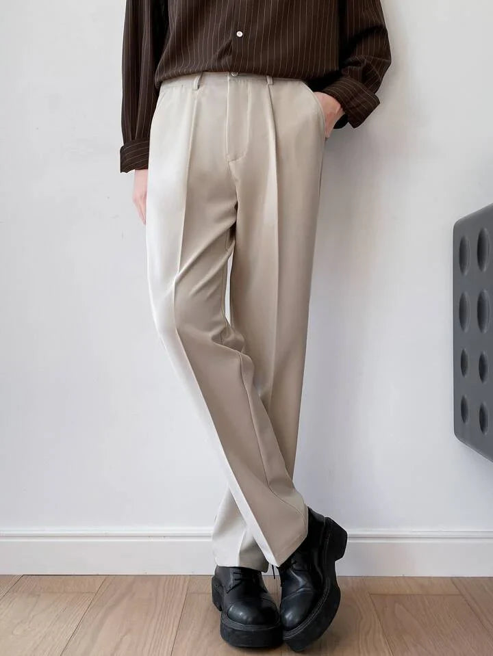 Elevate your wardrobe with the essence of Italian style embodied in our Men Semi Formal Straight Fit Korean Pants . These pants are offering a comfortable and fashionable choice for every occasion. Discover the perfect fusion of tradition and trend in these versatile pants.
