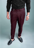 WINE DOUBLE PLEATED BUCKLE GURKHA PANTS BY ATIIRE