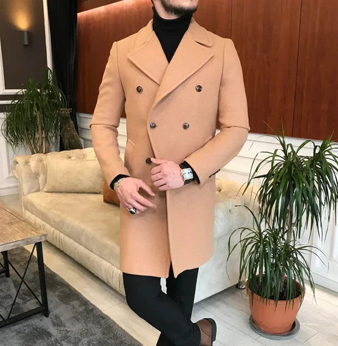 The carefully refined slim fit design slips perfectly over a jacket but sits close enough to the body to suit a simple shirt and a layered piece of knitwear. The coat is finished with a commanding double-breasted fastening and comes in a practical length cut.